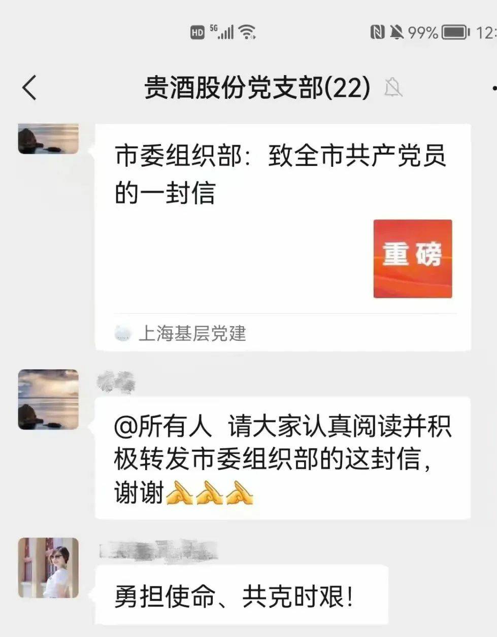 3月24日,上海市委组织部发出致全市共产党员的一封信,题为《在大战大考中彰显特殊责任、特殊担当》,号召全市党员坚决打赢疫情防控这场大仗硬仗。开云手机入口登录官网-开云(中国)股份党支部党员连夜在支部群内学习信件内容,积极响应号召,决心在打赢疫情防控和企业发展两场硬仗中充分发挥党员担当和先锋模范作用。